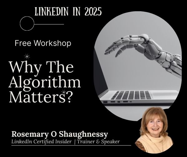 Your LinkedIn Journey with Rosemary O’Shaughnessy As a LinkedIn coach and insider, I’m here to guide you through every step of maximizing your LinkedIn presence. From personalized content creation to strategic profile optimization, my services are designed to help you shine on LinkedIn and beyond. Let’s unlock new doors together, and for a deeper dive into leveraging LinkedIn for your career advancement, I invite you to read the full article on my LinkedIn profile.